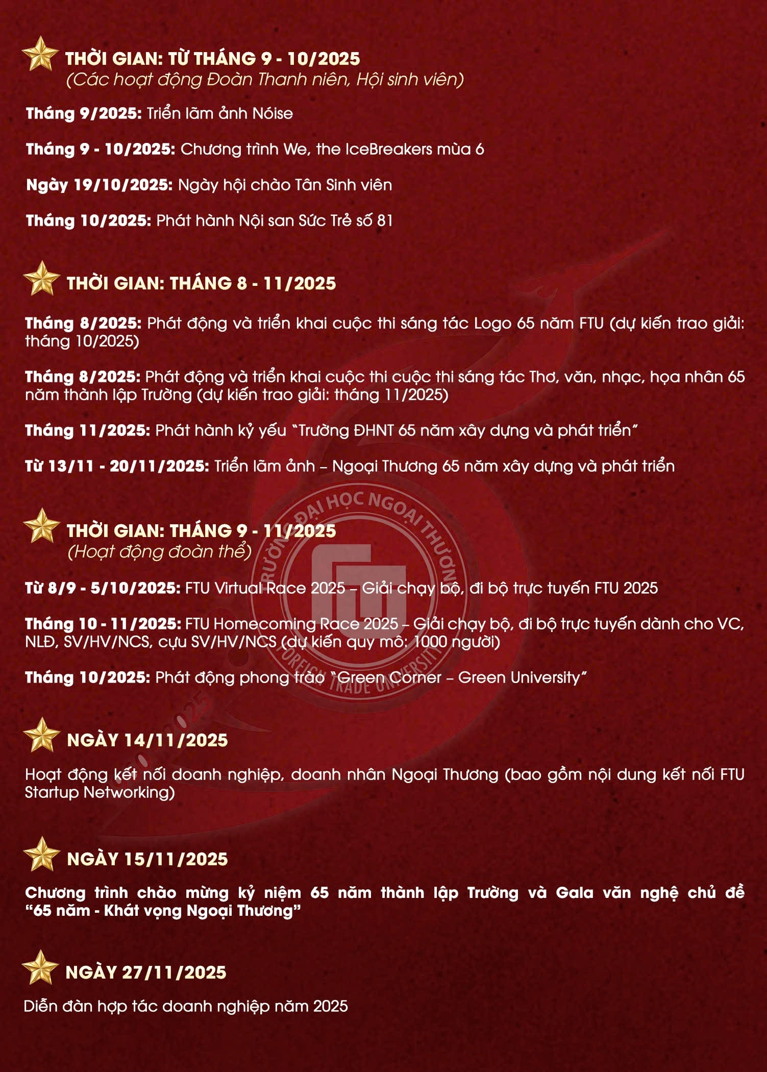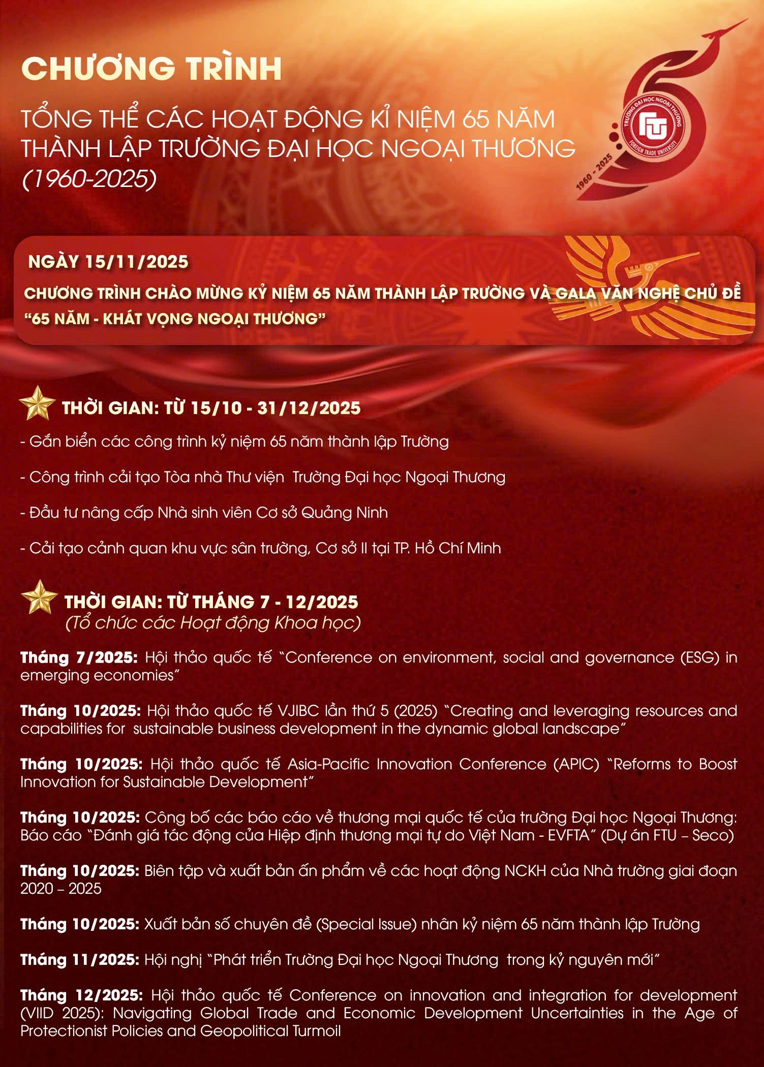 CHƯƠNG TRÌNH TỔNG THỂ CÁC HOẠT ĐỘNG KỶ NIỆM 65 NĂM THÀNH LẬP TRƯỜNG